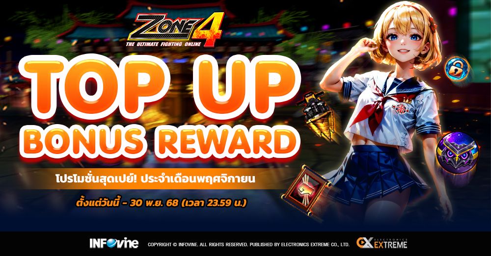เตรียมพร้อมรับสิทธิประโยชน์ใหม่สำหรับ "สังคมนักสู้โซนสี่" รับ Zen มากขึ้นกว่าที่เคย พร้อมยกระดับประสบการณ์สุดมันส์ใน Arcade ที่จะทำให้ทุกการเล่นสนุกยิ่งกว่าเดิม! ยิ่งลงดันเจี้ยนที่ท้าทายมากเท่าไหร่ ก็ยิ่งมีสิทธิ์รับรางวัลใหญ่มากขึ้นเท่านั้น! ทั้งหมดนี้มาพร้อมกับระบบ Energy ใหม่ ที่จะช่วยเพิ่มความท้าทายให้การเล่นของคุณให้สนุกได้มากกว่าเดิม! สนามนักสู้ Zone4 Extreme แห่งนี้กำลังรอคุณอยู่! เพื่อมอบประสบการณ์ที่ดีที่สุดให้กับนักสู้