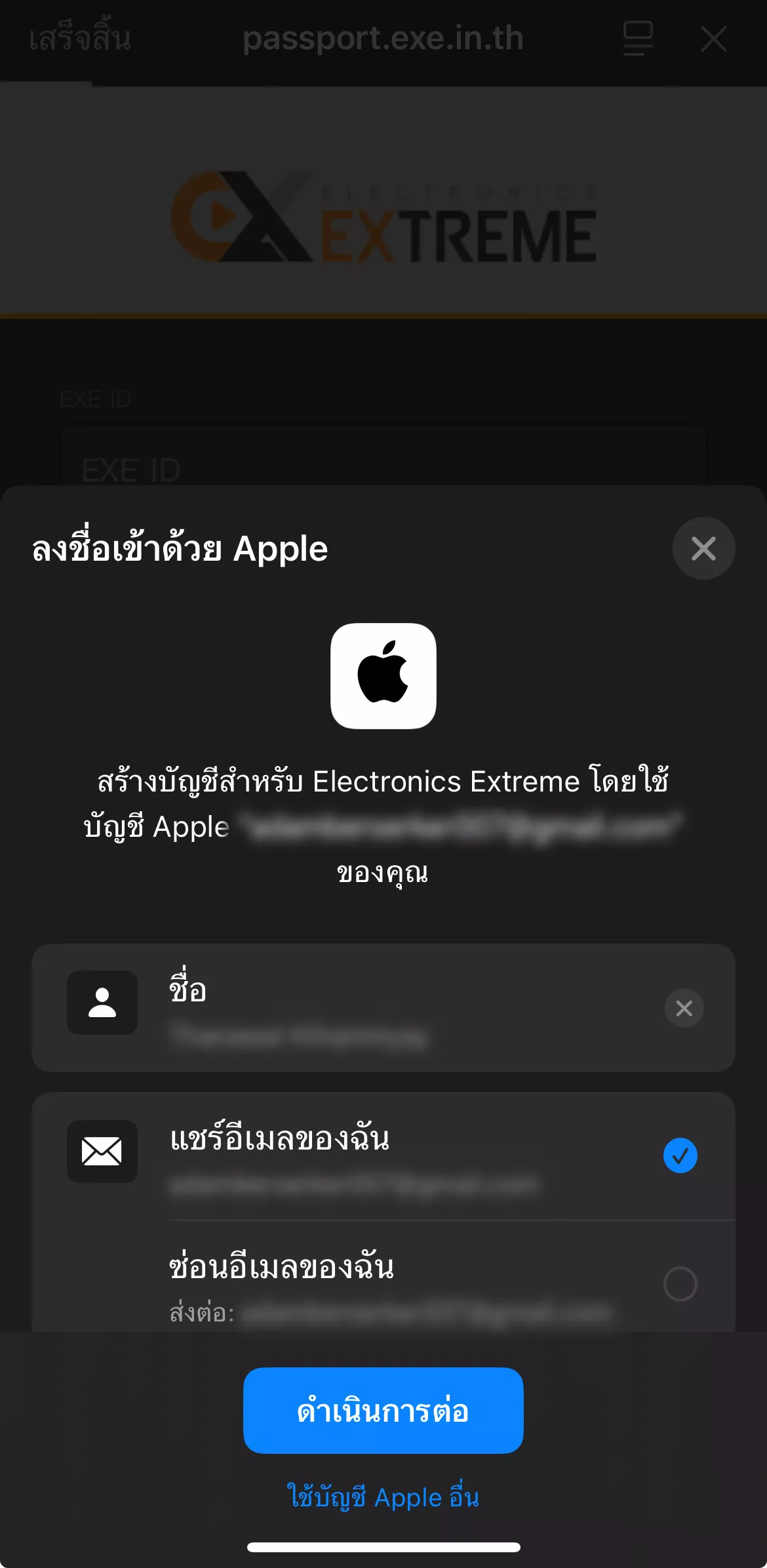 2. ใช้ Google ID หรือ Apple ID ในการ Login กับ EXE ID ที่ผูกไว้
