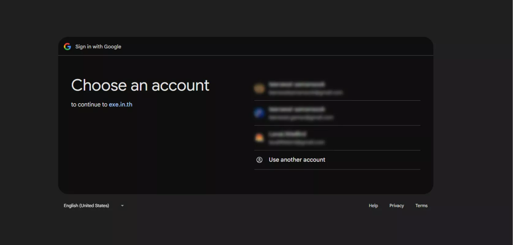 หน้าต่างสำหรับผู้ที่เลือก Login ด้วย Google
